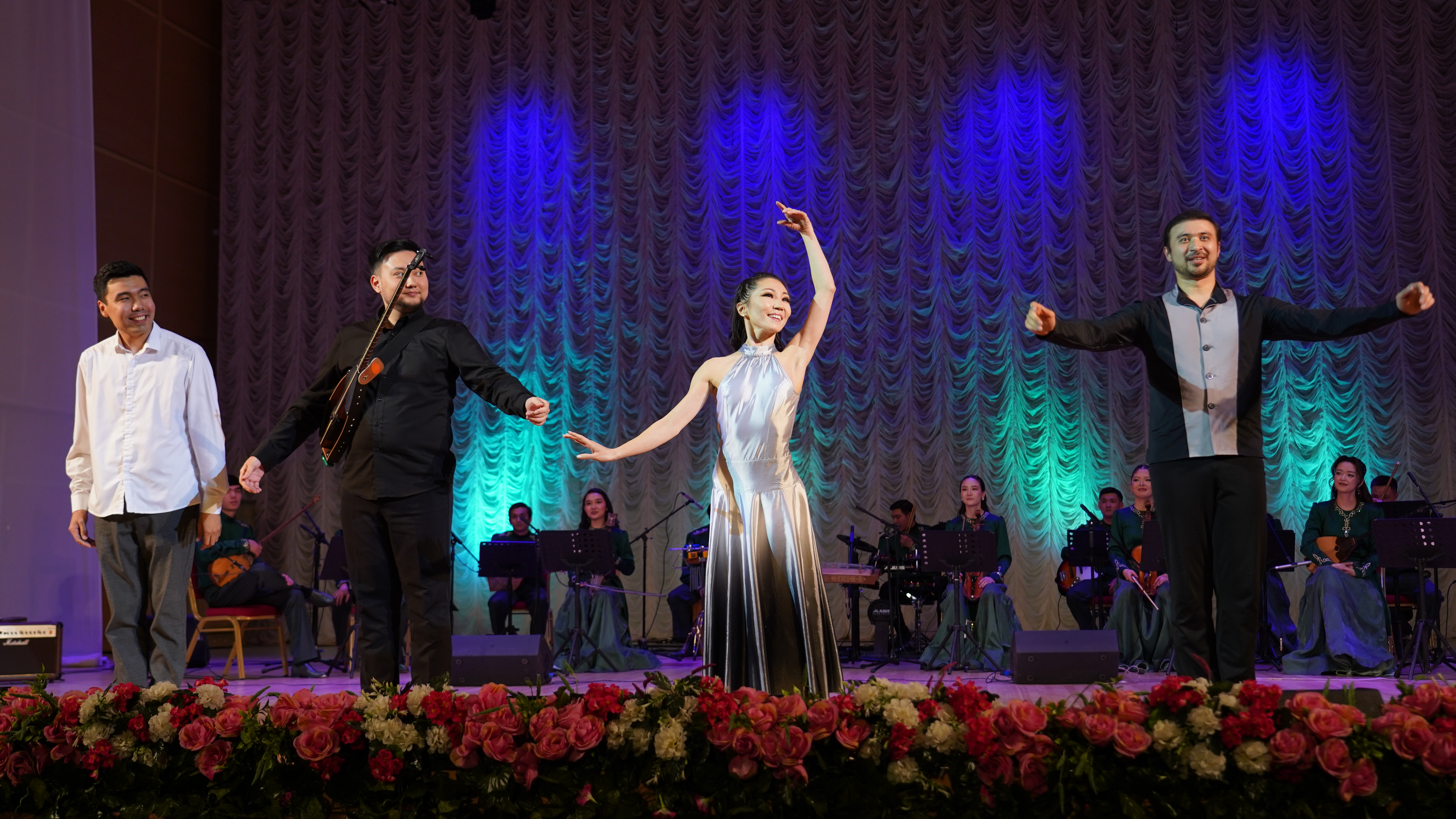 In particular, Omirkul Ainiyazov performed the songs "Kapezdin Koshtasuy" and "Sagyndym Goy." A highlight of the evening was Apeli's performance of "Kayykta" with the Saltanat ballet ensemble's dancers. A duet between Miras and Kuralai Bekzhanov, who performed the songs "Spring on Zarechnaya Street" and "Echo of Love," also added a special touch to the program. Also taking part in the concert were Kayyrzhan Utelbaev, Azamat Bekbergen, Ilmar, Aruzhan Danyshpan, Zhaina Targynova, Askar Rysbek and Nurgalym Amanbay.