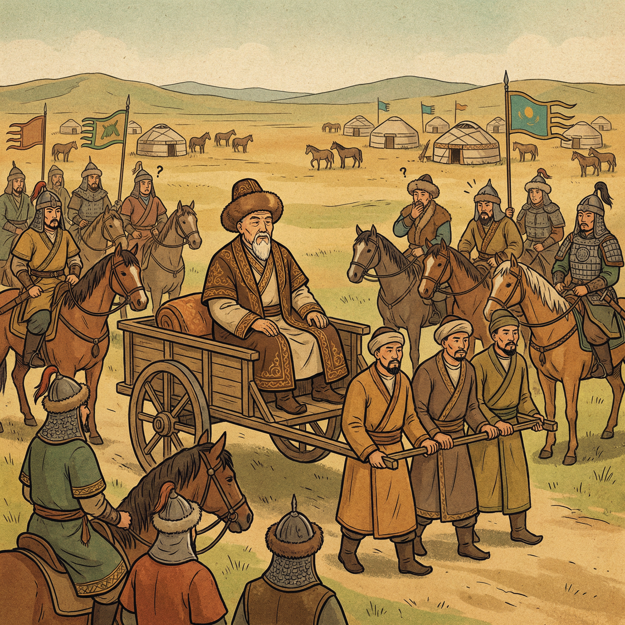 – Сендер төрт аяқты айуанға мініп келдіңдер, ал мен өмірімде айуан мініп көрген емеспін. Осы жағынан сендерден артығым бар, – депті.